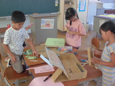2年生がおもちゃ祭りの準備をしています。先日のHPでもお伝えしました。今日も催し物(お店)の準備に一生懸命取り組んでいました。各グループで工夫を凝らし、準備しています。当日が楽しみです。