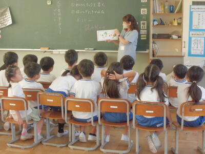 本日、お話ポットの会の方々による読み聞かせがありました。子どもたちは、読み聞かせが大好きです。熱心に聞き入っていました。