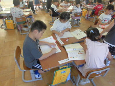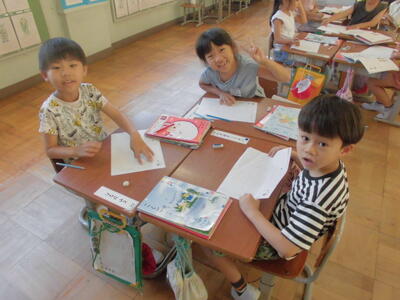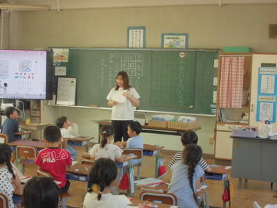 1年生は、国語科「ことばを みつけよう」の学習で、問題づくりをしました。縦、横、斜めに隠れている言葉を見つけ合います。自分で作った問題をグループ内の友達に出し合います。子どもたちは、楽しそうに問題に取り組んでいました。