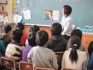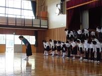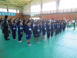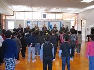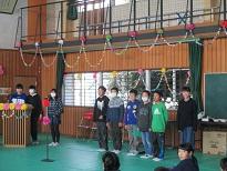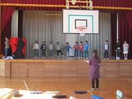 1~5年生は体育館で、6年生は教室で別れの言葉の練習をしました。