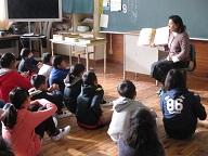 今日の朝の活動は、「お話ポットの会」の今年度最後の読み聞かせがありました。