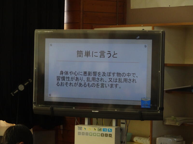 パワーポイントやDVD教材を使い、薬物とは?、薬物の恐ろしさなど、丁寧に詳しく教えていただきました。児童も自分事として真剣に考え、素晴らしい授業でした。