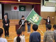 今日は、とちぎ環境・みどり推進機構の方々がお見えになり、団旗を授与してくださいました。子どもたちにデザインを募集して創った団旗です。嬉しそうに目を輝かせている子どもたちの顔が印象的でした。