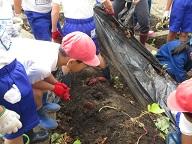 1年生と2年生が芋掘りをしました。とても楽しそうでした。ツルは、リ-スにします。