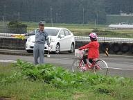 自転車の安全な乗り方について、講話を聞いたり、実際に自転車に乗って交通指導員さんにご指導いただいたりしました。