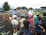 自転車の安全な乗り方について、講話を聞いたり、実際に自転車に乗って交通指導員さんにご指導いただいたりしました。
