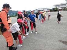 避難訓練の後、1~3年生は煙体験を、4~6年生は水消火器を用いた消火体験を行いました。