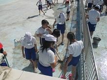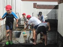 今日は「プール清掃」をしました。汚れを落とすのは大変でしたが、一生懸命ブラシでこすって、やっときれいになりました。