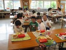 今日は1年生と6年生が「ランチルーム」で給食を食べました。