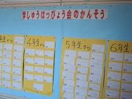 また、教室脇の廊下には、子どもたちが書いた学習発表会のメッセージが掲示してあります。温かな言葉で感想を伝えていますので、ぜひ、ご覧ください。