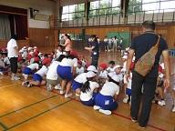 午前中は、雨のため、運動会の練習が体育館となりましたが、午後は、晴れて暑くなり、校庭では、高学年がよさこいの練習をしたり、応援合戦の練習をしたりしました。