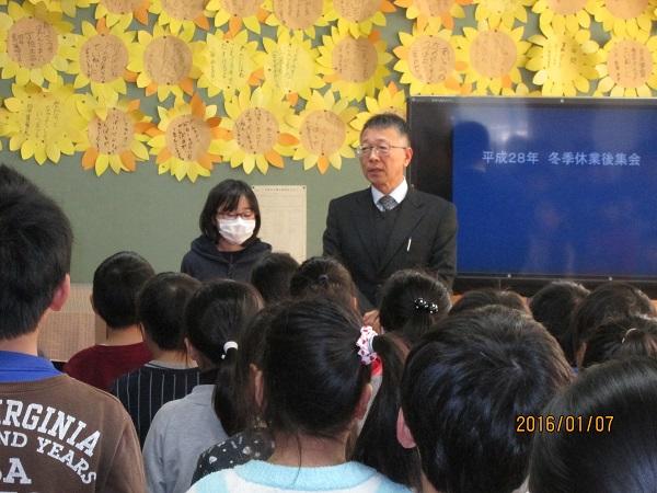 最後に学習指導主任と児童指導主任の話がありました。「はるやすみ」の5文字に合わせた注意事項について、確認がありました。4月8日に、全員が元気に登校するのを待ってます。