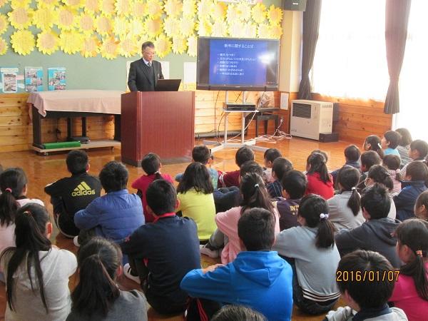 教育委員長職務代理者様、教育長様からあいさつをいただいた後、学校長から知育・徳育・体育の三観点からの学校経営についての説明と、家庭や地域に開かれた学校づくりについての説明をいたしました。そのほか、来年度入学生と、ひまわりスクールについても説明を加えました。