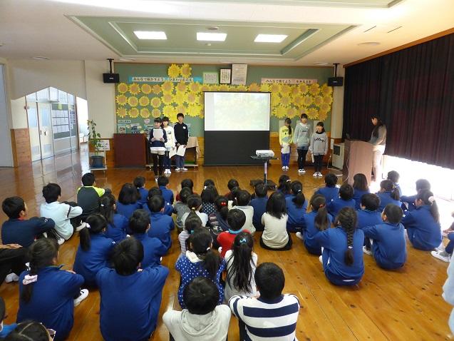 他学年の児童からも好評で、終わった後は大きな拍手を受けました。また、感想発表でも多く手が挙がったので、各学年の児童1名から、「自分たちの時もくじらぐもを発表したので、懐かしく感じた」「声がそろっていて、素晴らしいと思った」等の感想を発表してもらいました。