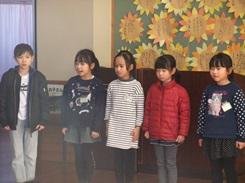 「日づけとようび」「十二支」「ともだち」「教室はまちがえるところだ」の4編を発表しました。大きな声で元気よく、時には一人で、時には全員でと、すてきな群読でした。少し緊張しながらも一生懸命な顔と、終わってからのみんなの感想でたくさんほめられた時の笑顔が、とても印象的でした。 入学からほぼ1年、1年生は大きく大きく成長しました。