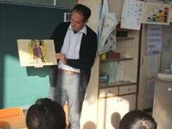 1月18日(木)朝の活動はお話アワーでした。3人の先生が、低・中・高学年に分かれて絵本の読み聞かせをする時間です。前日の職員室では、「本校にはない絵本がいいなあ」 とか「高学年には古典かな」「低学年がよろこぶ本もっていたかな」などの声が聞かれます。