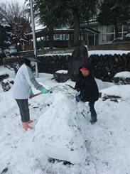 休み時間は第2校庭で雪遊び!こんなにたくさんの雪がふるのはなかなかないので、大きな雪だるまをつくったり、雪合戦をしたり、楽しい楽しい昼休みでした。