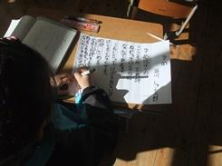 6年生は、じっくり丁寧に「書写」に取組んでいました。2年生からは、元気な歓声が聞こえます。算数の時間で、九九ビンゴで学習です。先生の出す九九カードの九九を、大きな声で唱え、自分で作ったビンゴカードに丸をつけていきます。「もうスリービンゴです」の声も。楽しい学習でした。