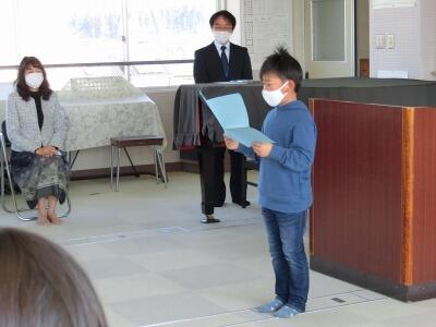 本日は令和2年度修了式でした。 教室のハウリングを考慮して、3階の音楽室で行いました。「修了」は、その学年に 相応しい児童としての学力と体力と、そして 心を身につけましたという意味です。コロナ禍で大変な1年でしたが、子ども達は、いつも元気いっぱいしっかり学び、修了式を迎えることができました。各学年の作文発表もあり、とてもりっぱな発表でした。 春休みに向けて児童指導主任、学習指導主任からのお話もありました。