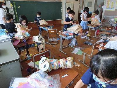 総合的な学習の時間の全校プランもいよいよ終盤です。今日のひまわりタイムは、育てたひまわりの種を地域の皆さんにプレゼントしようという活動です。ひまわりいっぱいの地域になるといいなあという願いも込めて、10粒ずつ袋に入れました。カードに心を込めて色をぬりました。一つとして同じものはありません。地域の皆さんどうぞお庭に蒔いてください。