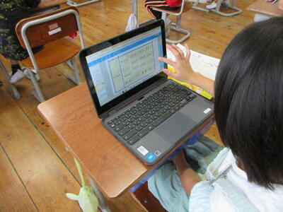 国語科「なかまのことばとかん字」の学習でした。タブレットを活用し仲間の言葉を集めたり、グループで集めた言葉分けを共有したりし、交流を通し、語彙を豊かにすることができました。