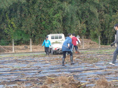 本日1校時目に、畑のひまわりを撤去しました。