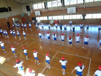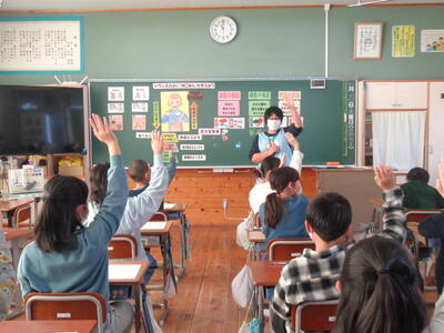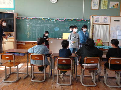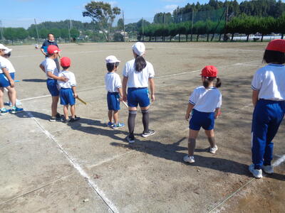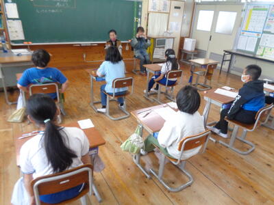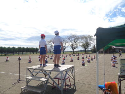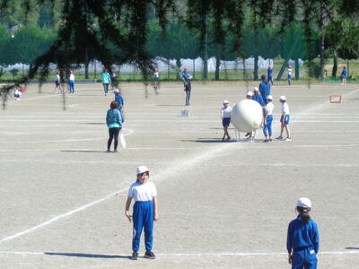 4校時目に上学年が運動会の練習をしていました。今年度新しく加えた全校種目「今日大玉転がしてイイじゃん」です。人と人の間隔があいているため、上学年ががんばらないといけません。全校生86名の本校は、出場数は多く、待ち時間は少ないというのが特徴です。5・6年生は係の仕事もあるため、自分の席につくことはほとんどありませんが、みんなで力を合わせがんばっています。