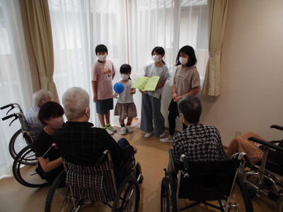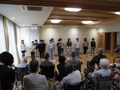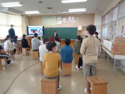 5年生が総合的な学習の時間で、福祉の学習をするため、「たかくらの里」に行きました。「たかくらの里」は矢板市に住所がある方のみ入居できる地域密着型の老人ホームです。昨年度までは、インターネットや書籍で調べ学習をしたり、外部講師をお招きして疑似体験をしたりするだけでした。今年度は、実際に自分たちの思いを伝えたり、高齢者の方と触れ合ったりすることで、一歩進んだ学びとなりました。施設見学もさせていただきました。自分で考えること・臨機応変に行動すること等の大切さがわかったようです。今日撮影した動画を見て、振り返りを行います。受け入れてくださった「たかくらの里」の皆様、ありがとうございました。