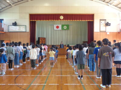 今日、4校時目に第1学期の終業式を行いました。終業式には、全校生が節目の大切な式ということをしっかり理解し、立派な態度で参加することができました。
