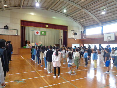 表彰式もありましたが、一人一人が大きな声で返事をし、本校の学校経営の方針どおり、児童一人一人がひまわりのように輝いていました。