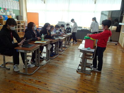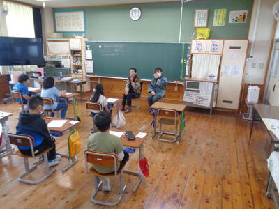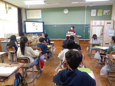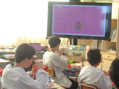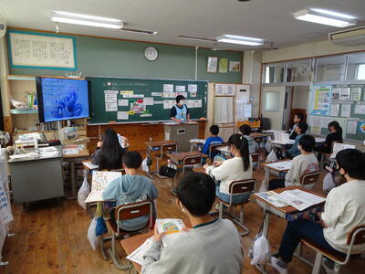 We live together. という単元の学習です。絶滅危惧種や環境問題に迫る、子どもたちにとってはややハードルが高い学習ですが、英語専科の教師とALTのT.Tできめ細やかな授業が展開されていました。今日はリスニングを中心に活動が行われていました。子どもたちが笑顔で学習に向かう姿が印象的でした。