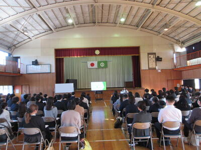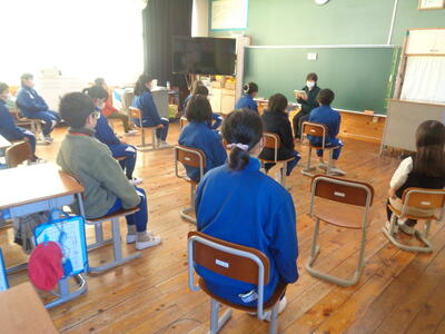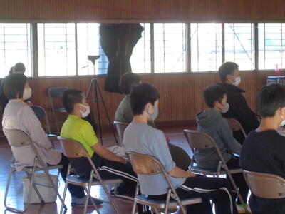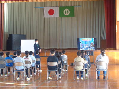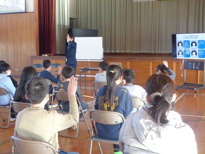 中学校説明会に6年生が参加しました。授業見学の後、体育館で、校長先生による学校説明がありました。その後、生徒会役員による学校紹介を動画視聴しました。小学校との教科の違い・部活動紹介・学校行事の様子等をわかりやすく説明していただきました。生徒指導主事より、中学校の生活と入学までの準備物についての説明もありました。動画に出てくる先輩の生き生きとした姿を見たり、先生方の説明を聞いたりして、小学校との違いを感じながらも中学校入学への期待と意欲が高まったようでした。中学校の先生方、生徒の皆さん、ありがとうございました。