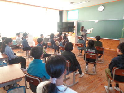 今年度4回目の「おはなしポットの会」の皆様による読み聞かせです。どの教室も、子どもがいないのではないかと思う程静まりかえっていました。それだけ、本の世界にひきこまれていたのでしょうね。
