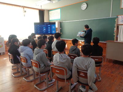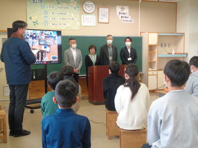 人権擁護委員協議会矢板部会長様・2名の人権擁護委員様・市総務人事課の方、計4名にお越しいただき、人権集会を行いました。インフルエンザが流行していることから、6年生のみ直接、他の学年はオンラインで講話を聴きました。今年度は「外国の人の人権について」というテーマです。肌の色や髪質によっていじめたりからかったりしないというアニメも視聴しました。本校の子どもたちの身近にある問題ではないかもしれませんが、今の社会では身に付けておくべき大切なことを学ぶよい機会となりました。ありがとうございました。