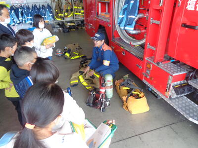 3年生が、社会科「なくそう、こわい火事」の学習で矢板消防署に行きました。そして、消防署の役割や働きについて、お話を聞いたり、見学をしたりしました。本校は少人数のため、時間をかけて丁寧に説明をしていただくことができます。また、防火服を着たり、ホースを持ったりする体験もたくさんさせていただきました。矢板消防署の皆様、お忙しい中のご対応、ありがとうございました。