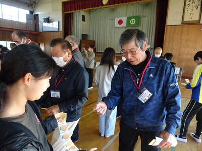 今日はひまわり祭を開催しました。第1部は、児童会主催の「感謝の集い」です。11月23日が勤労感謝の日であることから、収穫祭の日に合わせて設定しています。日頃お世話になっている方々をお招きし、感謝の気持ちをお伝えしました。今年のプレゼントは、栞です。交流ではカード集めじゃんけんゲームをしました。ペアになり、自己紹介をして、じゃんけんをします。負けた人は勝った人にひまわりカードを渡します。来賓の方に勝つと2枚もらえるため、子どもたちは勝つと大喜びしていました。高学年の皆さん、楽しい企画をありがとう。最後に「ありがとうの歌」と「校歌」で歌のプレゼントをしました。来賓の方の中には本校の卒業生も多く、一緒に校歌を歌ってくださっていました。笑顔あふれる感謝の集いとなりました。
