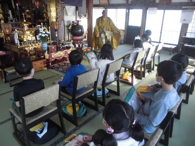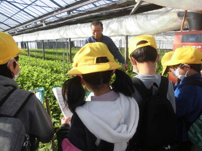 今日の2年生は、地域の菊農家と薬王寺に校外学習に行きました。まず、年間を通してたくさんの菊を学校に持ってきてくださる方のビニルハウスに伺いました。いつも昇降口や教室に飾られている菊の花がどのように栽培されているのか、働く人はどんな思いなのかを説明していただいたり見学したりしました。その後、薬王寺に行きました。お釈迦様や仏様についてや手を合わせる意味等についてご住職に説明していただきました。本堂に通された子どもたちが神妙な面持ちでお話を聞いていたのが印象的でした。市村様、有馬様、お忙しい中ご対応いただきありがとうございました。