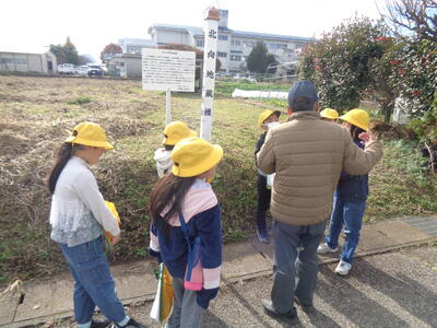 今日は、3年生が総合的な学習の時間に校外学習に行きました。乙畑地区の史跡巡りです。今年も乙畑郷土史研究会員の永井裕様にお世話になり、熊野神社・乙畑城跡・首なし地蔵に行き、それぞれの場所で説明をしていただきました。子どもたちは、昨日聞いた民話と結びつけながら見学できたようです。