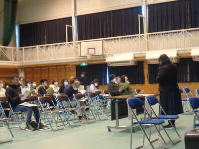 来年度の入学予定児童は男子4名です。健康診断中は、保護者の方は、生涯学習課による「子育て学習」に参加します。子どもたちは4人とも落ち着いており、先生のお話もよく聞いて行動していました。終始笑顔で、校内を歩くことを楽しんでいたようです。互いに初対面の子もいたようですが、健康診断後は、すっかり仲良くなっっていました。4月に元気に入学してくれるのをみんなで待っています。