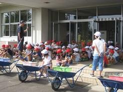 9月15日(金)昼休みは緑活動でした。ひまわり班に分かれて、花壇の除草をしました。除草と枯れてしまった花の始末をして、花壇をきれいにしました。最初に担当の先生から鎌やスコップを使って草を根ごととる方法を教えてもらいました。みんながんばって根っこもきれいに取ることができました。