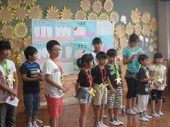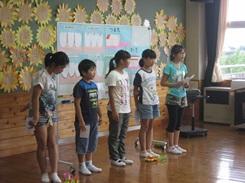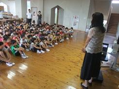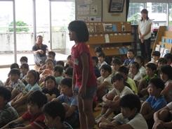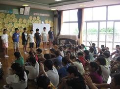 乙畑小学校では、夏休み前の指導として、昨日19日(水)に「夏休み前児童指導集会」と本日の朝の活動で「夏休み前集会」を行いました。児童指導の方では、児童指導主任が、竜巻や大雨、雷から自分で身を守るために、DVDを使用した指導を行いました。本日の集会では長い夏休みに何か一つ目標をもってチャレンジしましょうという話と事故や事件に巻き込まれない安全な夏休みをすごしましょうという話があり、その後学習指導主任より夏休みの学習、自主学習のやり方についてお話がありました。何か一つ、今年の夏休みは「これ」をがんばったなと思えるような38日間を過ごしましょうという言葉が印象的でした。
