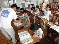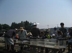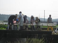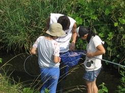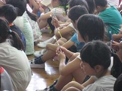 7月9日(日)に乙畑地区の子どもたちが、近くの川をせき止めて行う「生き物調査」に参加しました。大人と一緒に川に入り水生昆虫や魚をどんどん捕っていました。どんな種類が何匹いたかを調査した後は、またもとの川に放します。普段できない川遊びをとても楽しんでいました。
