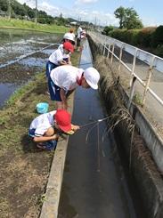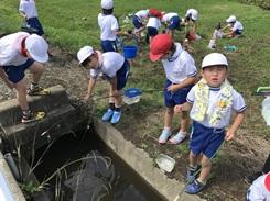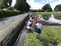 7月10日に1,2年生は、生活科の校外学習でザリガニつりをしました。西乙畑の通学路脇の水路にみんなで出かけ、するめや煮干しをつけた釣り竿でザリガニ釣りをしました。大変よく釣れて、一人2匹ずつ持ち帰りました。学校では、これから飼い方を調べ、大切に育てます。