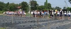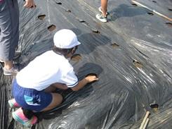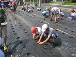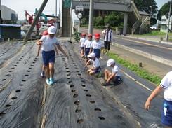 7月10日にひまわり活動を行いました。少しでも涼しいうちにということで急遽1校時に実施しました。今回はひまわり畑の南半分にビッグスマイルという種類のひまわりの種をまきました。夏休み後にも花を楽しめるように段階的に種まきをしています。暑さをものともせず、みんな一生懸命働いていました。みんなの思いが、きれいな花をさかせることと思います。楽しみです。
