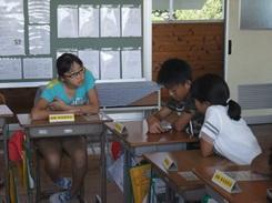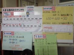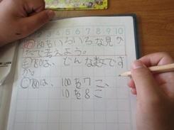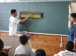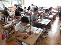 4年生今日の算数はそろばんの授業でした。そろばんの指導は担任だけでなく、ティームティーチングで行っていました。一緒に教えていただいているのは、本校技術員の田代さんです。田代さんは指導者の資格もあるそろばんの達人です。この時間は、小数のたし算とひき算をそろばんで計算する方法を勉強しました。
