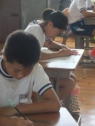 本日、2・3校時に「ひまわりチャレンジテスト」を行いました。漢字・計算の基礎的なものですが、夏休みにパーフェクト目指して学習してきた内容です。どの学年も真剣に取り組んでいました。