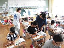 7月13日 ICT支援員による1・2年生のパソコン教室がありました。1年生は「はじめてのパソコン」と題して、起動の仕方やマウスの動かし方を学習しました。2年生は「パソコンでお絵かき」と言うことで、お絵かきソフトを使ってお絵かきを楽しみました。1年生も2年生も真剣な態度でパソコンに向かっていました。