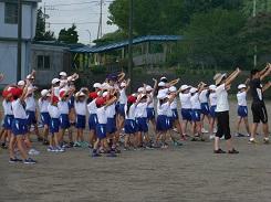 給水タイムのあと、応援合戦の入場を練習し、練習が必要だった応援の振り付け等を紅白に分かれて練習しました。高学年の児童が応援歌の時の動きを、低学年に指導する姿がありました。その後、よさこいソーランの位置を確認し練習を終えました。