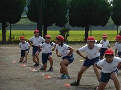 9月1日の朝の活動で、運動会の種目、全員で行う「赤白対抗スーパーリレー」の練習を行いました。