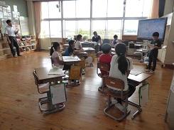 1年生から6年生までの授業の様子や特別教室、体育館やプールなどの施設、校庭をご覧になり、「きれいにお使いくださってますね。」「児童が落ち着いて授業を受けていますね。」などの感想をいただきました。